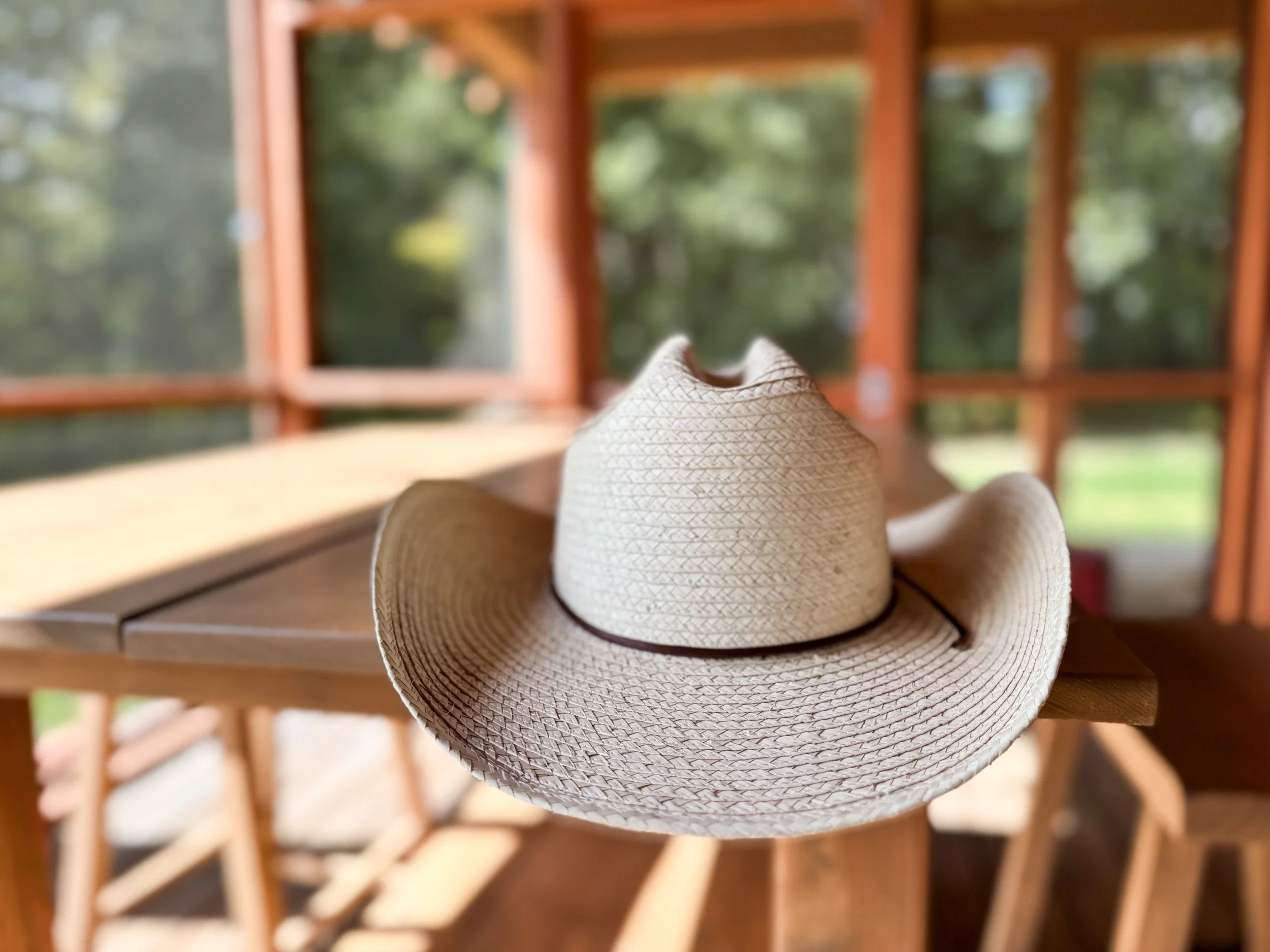 Cofer Hat Company receives hand woven hat bodies from Guatemala by way of Texas as an open crown/unshaped and installed with a fabric sweatband. Each hat is then shaped by hand, trimmed and dressed in the Cofer Hat Co. workshop.