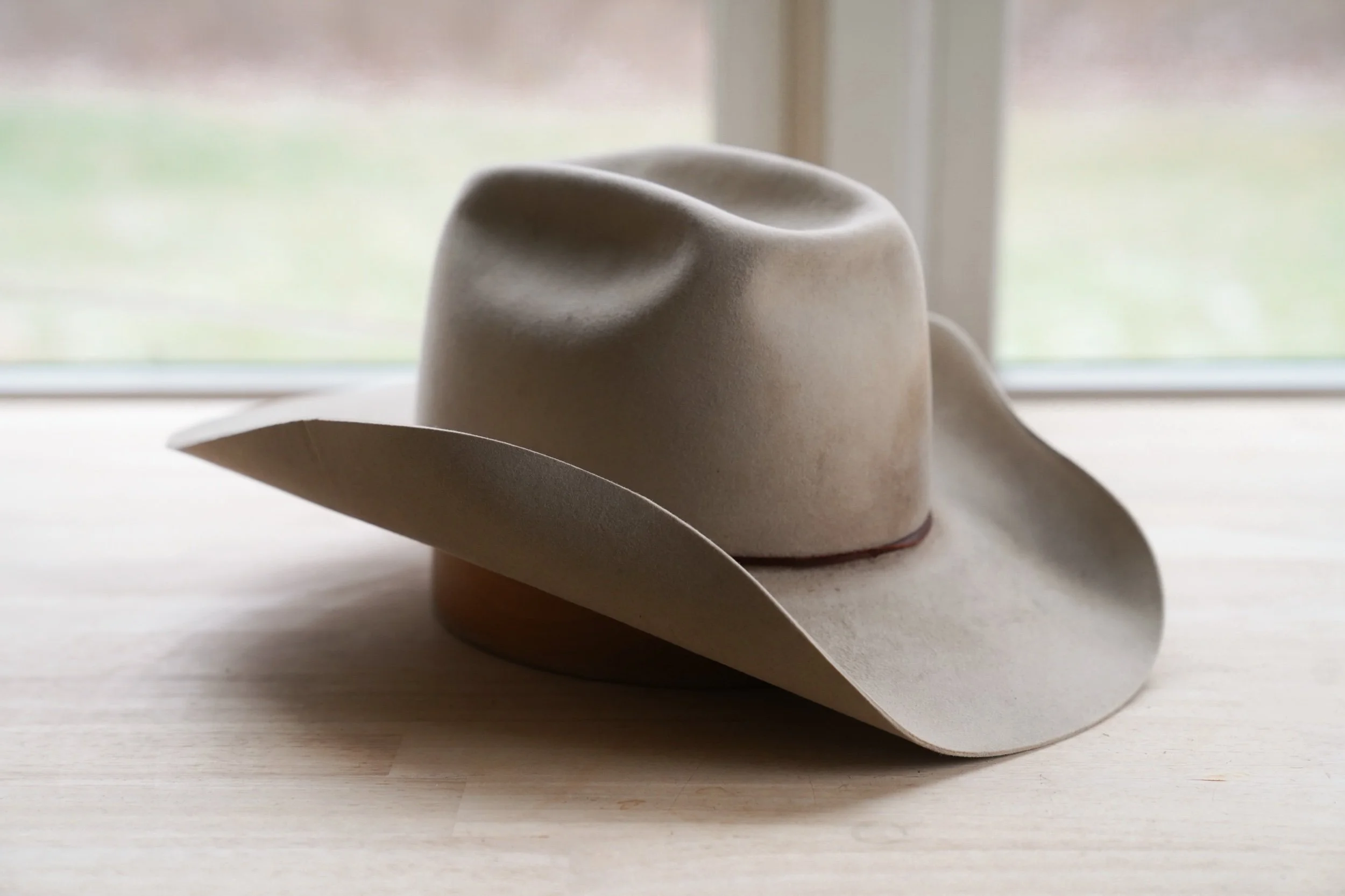 Description : reworked felt, sloppy modified brick with mule kick, asymmetrical over curled brim