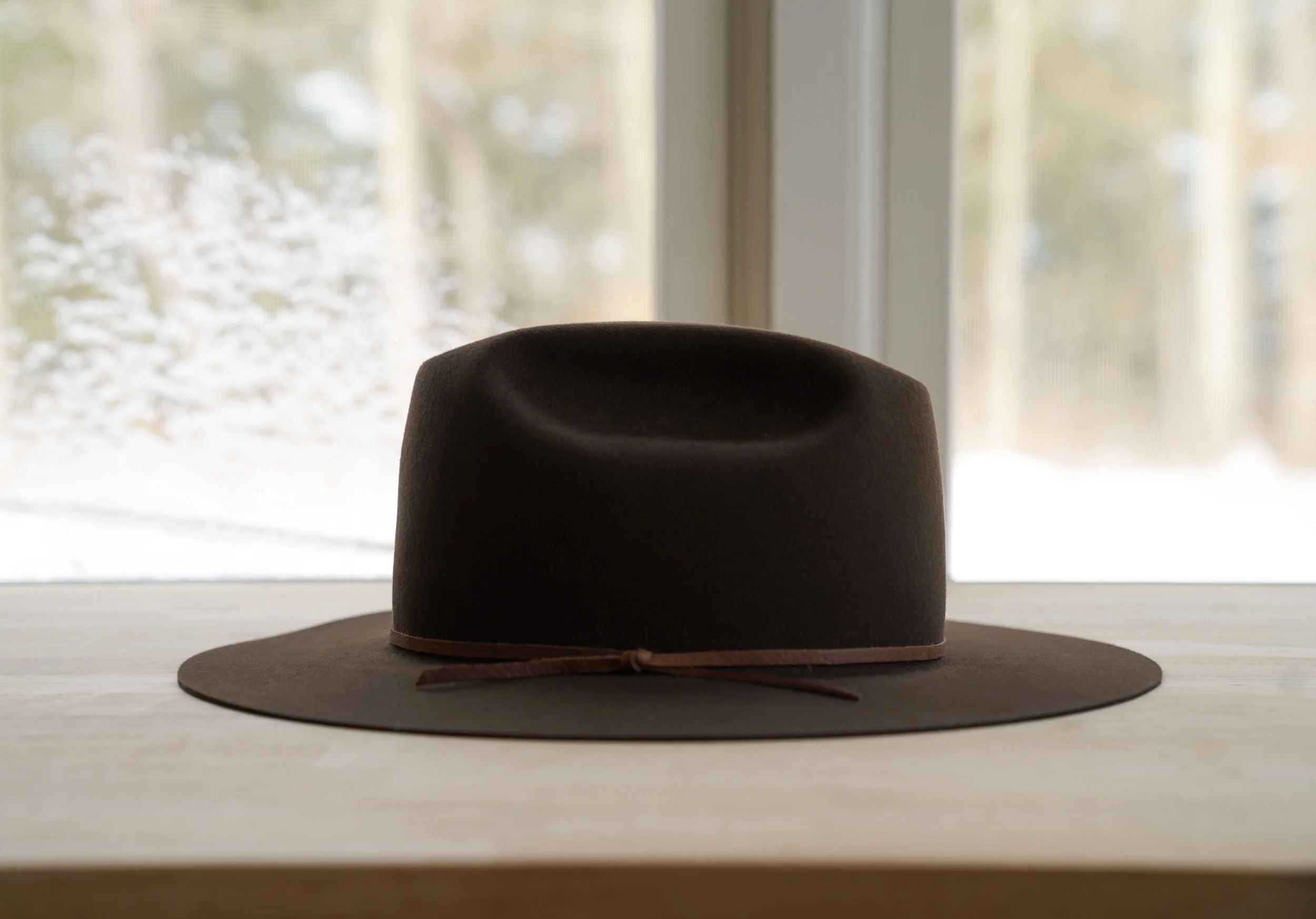 Description : Cattleman Crown, flat brim with slight drop in front and back